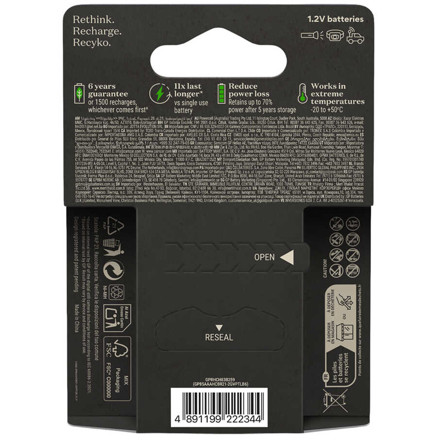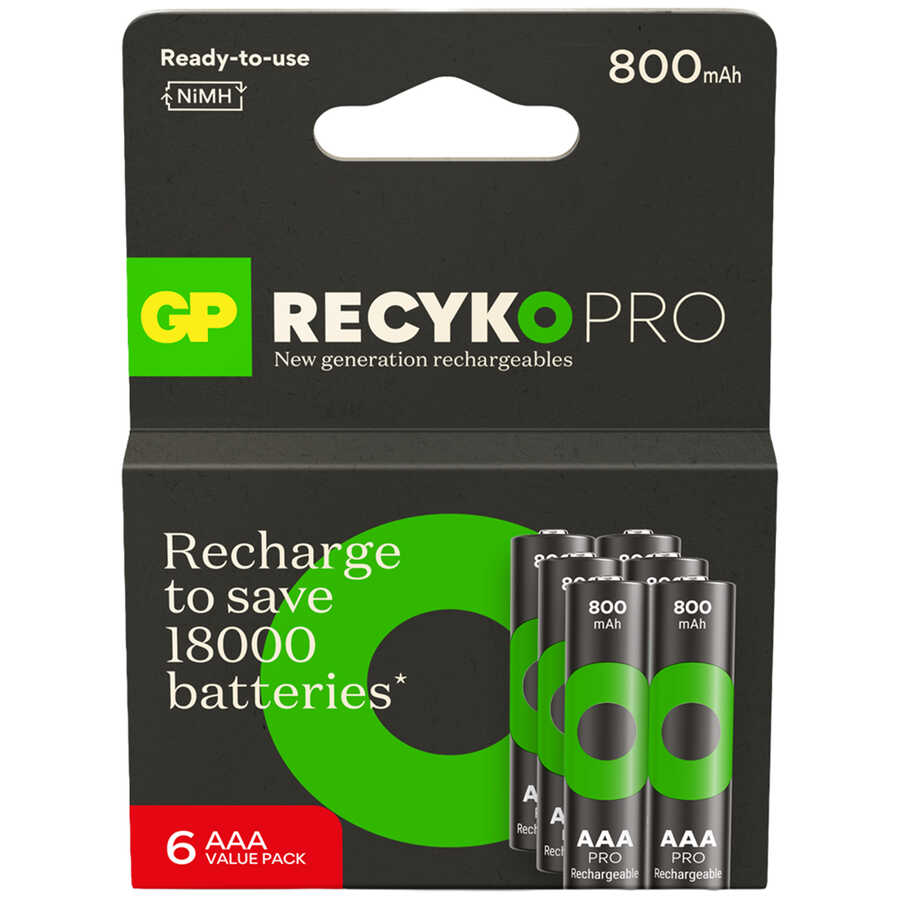 GP Batteries Recyko Pro AAA İnce Kalem Ni-Mh Şarjlı Pil, 1.2 Volt, 6’lı Kart