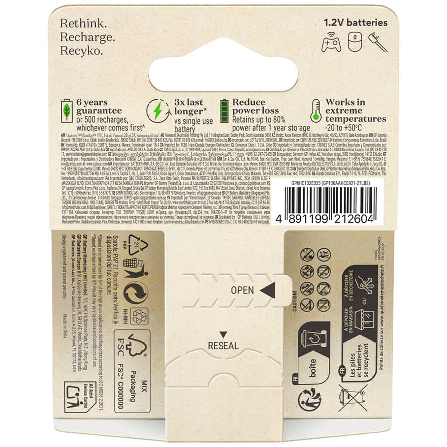 Çevre dostu özelliklere sahip, çevre ve cüzdanınız üzerinde daha az stres yaratan bir NiMH şarj edilebilir AA pil.