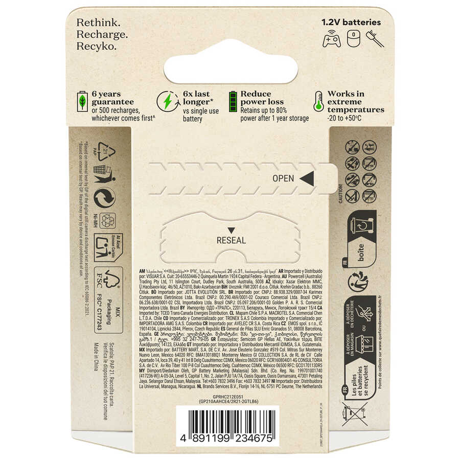 GP Batteries Recyko 2100mAh AA Kalem Ni-Mh Şarjlı Pil, 1.2 Volt, 6’lı Kart