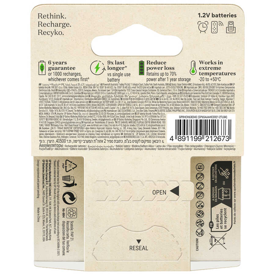 GP Batteries Recyko 650mAh AAA İnce Kalem Ni-Mh Şarjlı Pil, 1.2 Volt, 4'lü Kart